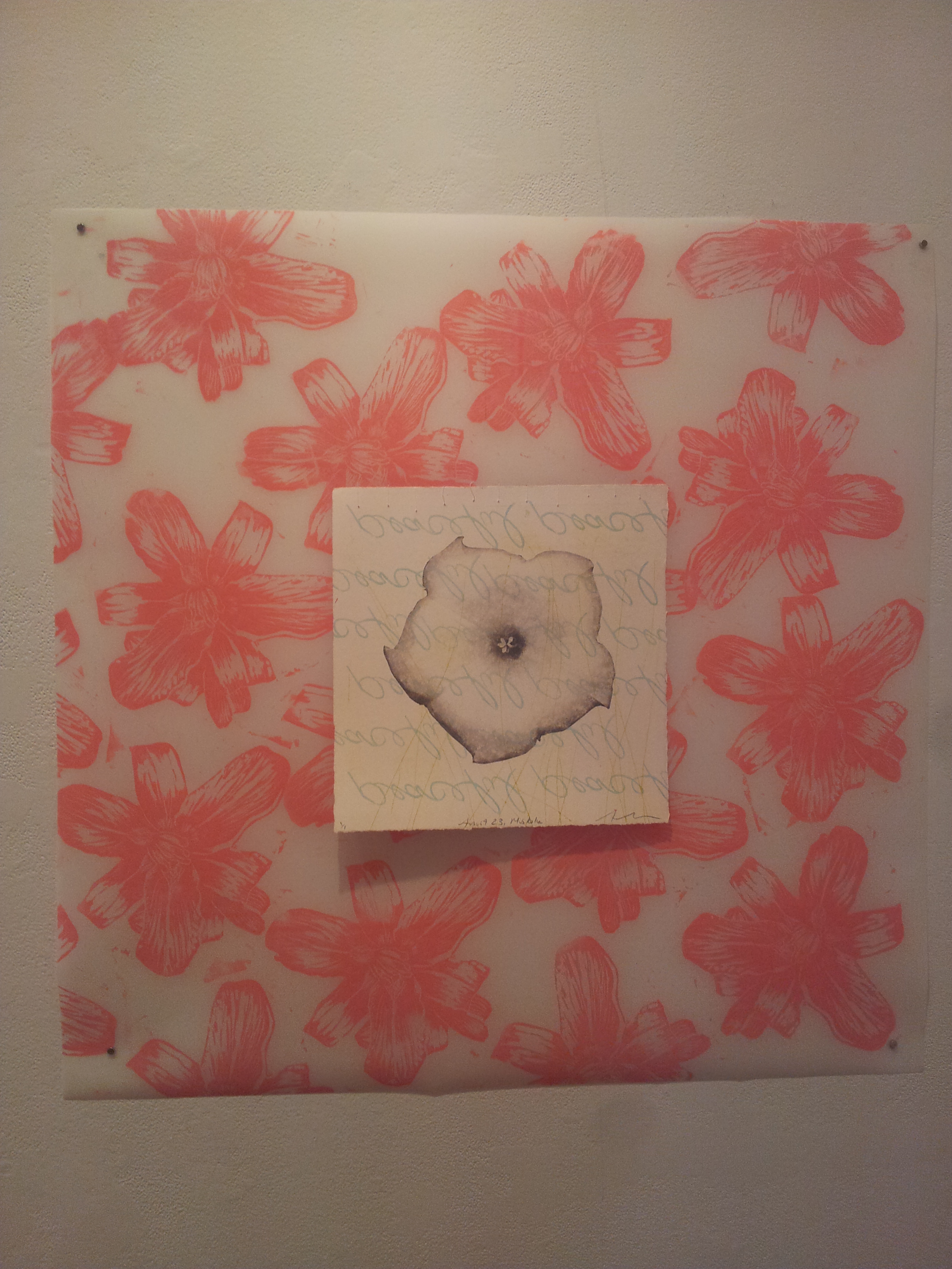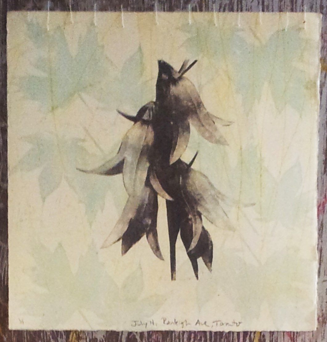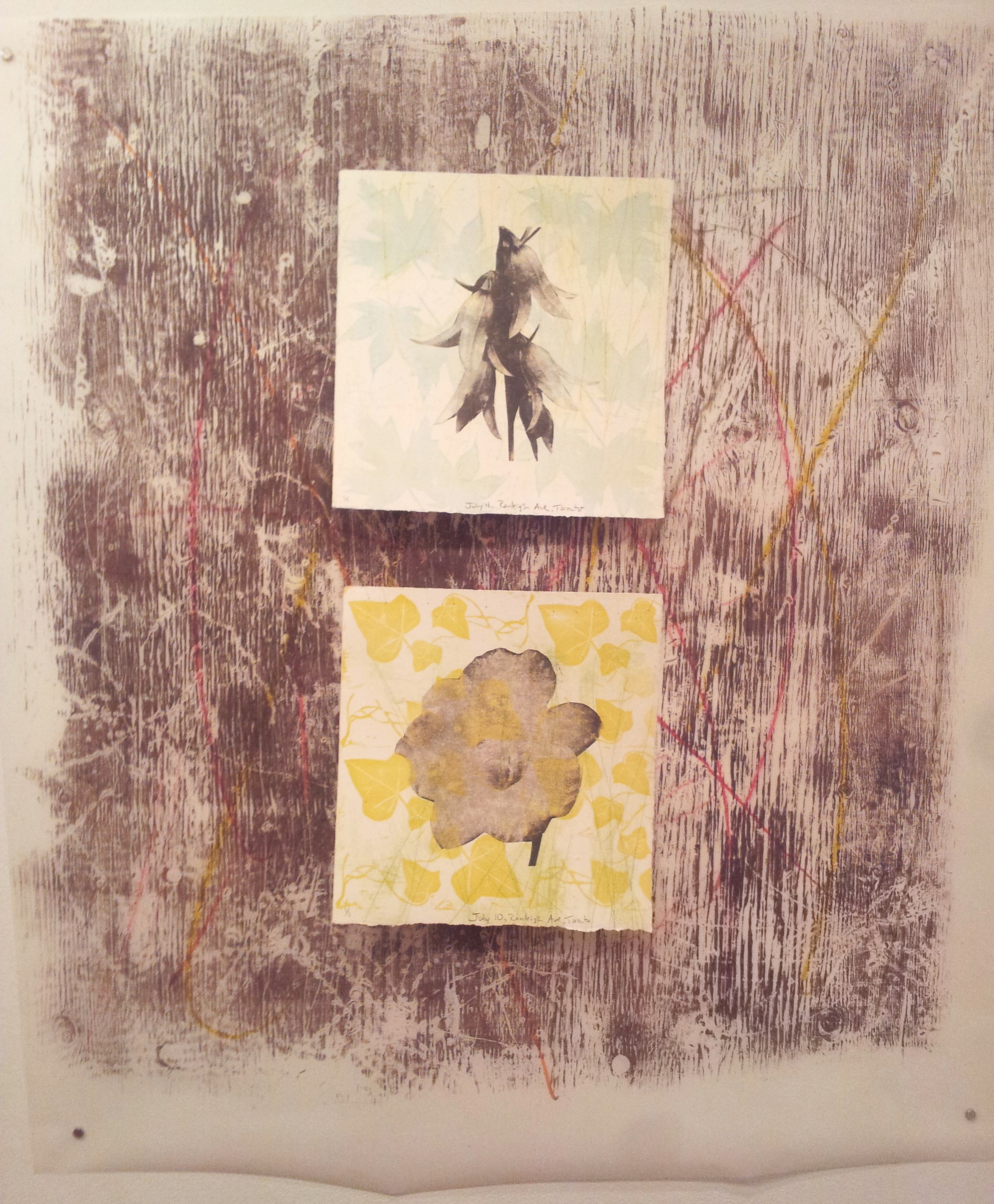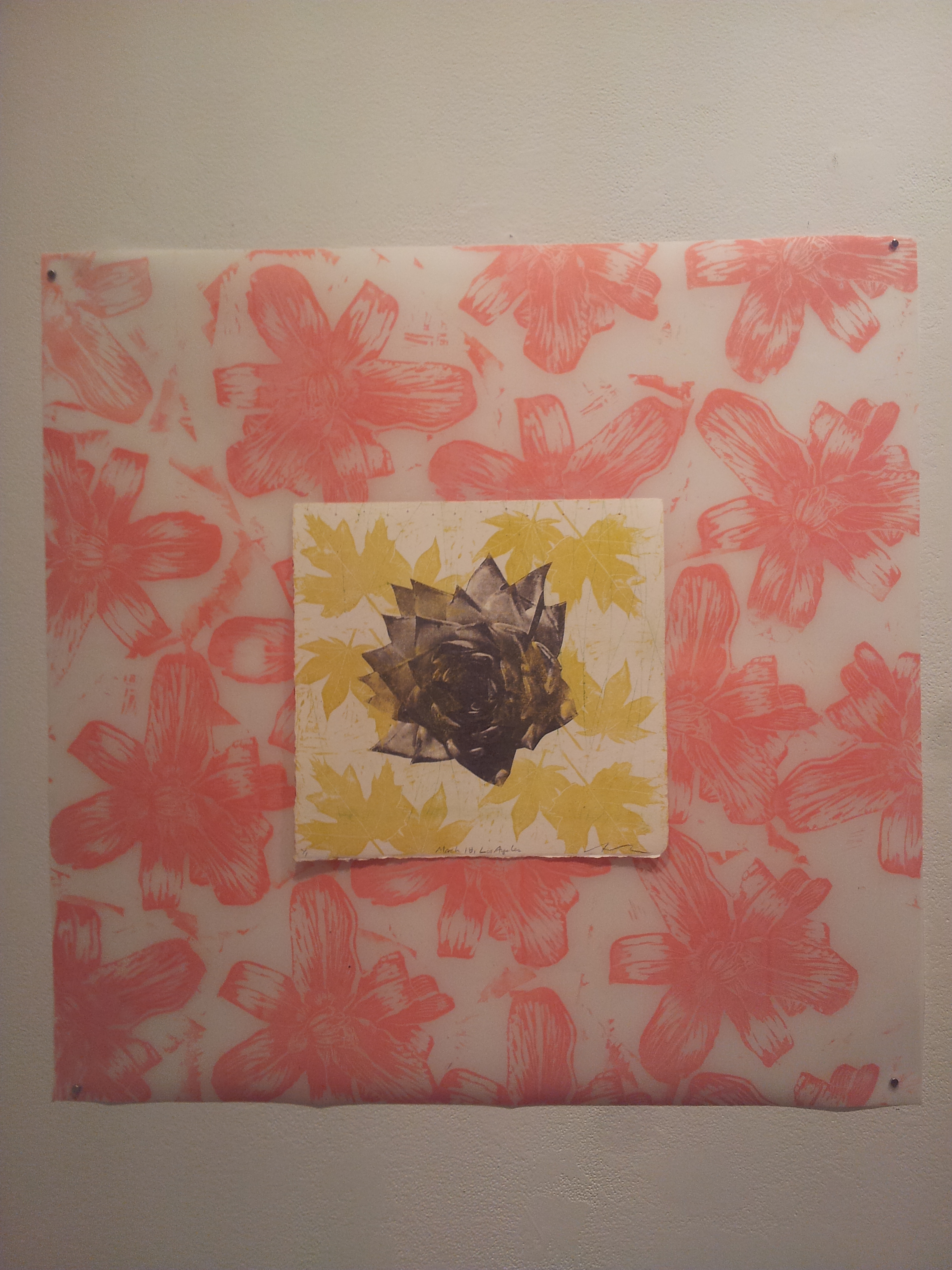 The flowers were taken by myself, on my phone. I call them a protrait becasue it it is a picture of a particular flower at it’s prime. The photos were cropped and optimized and shared with Instagram. The photos were printed, and then photocopied at a magnified resolution. I cut out the photocopied image of the flower and transferred it to paper with an etching press.